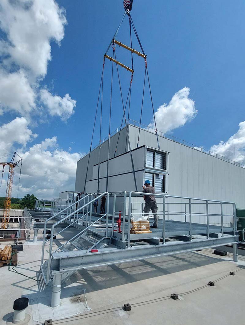 ConProMa übernahm die Ausführung des Stahlbaus sowie die Installation von zwei zentralen Lüftungsanlagen zur Be- und Entlüftung von Küche und Kantine.