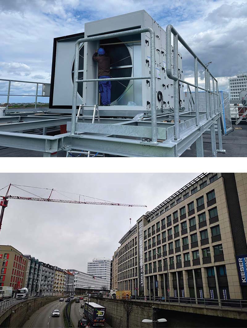 ConProMa übernahm die komplette Erneuerung der Dachlüftungsanlage einschließlich Stahlbau sowie die Installation einer zweiten Anlage zur Tiefgaragenentrauchung.